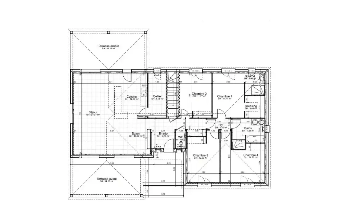 Notre bureau d’études a imaginé cette maison avec étage dotée d’une suite parentale généreuse qui vous offrira tranquillité et intimité. Elle comprend un spacieux dressing et une salle de bain attenante, offrant un confort optimal.