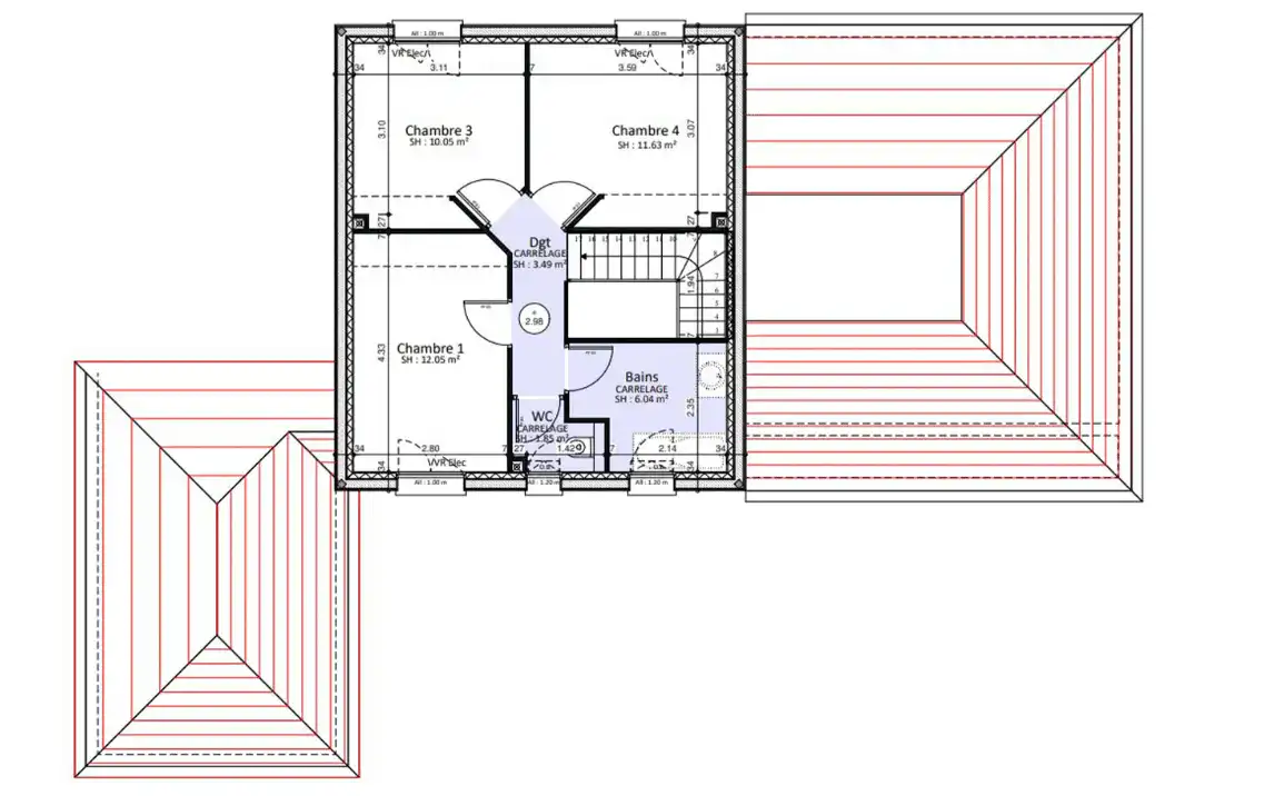 Notre bureau d’études a imaginé cette maison avec étage dotée d’une suite parentale généreuse qui répondra à votre besoin de tranquillité et d’intimité. Elle comprend un spacieux dressing et une salle de bain attenante, offrant un confort absolu.
