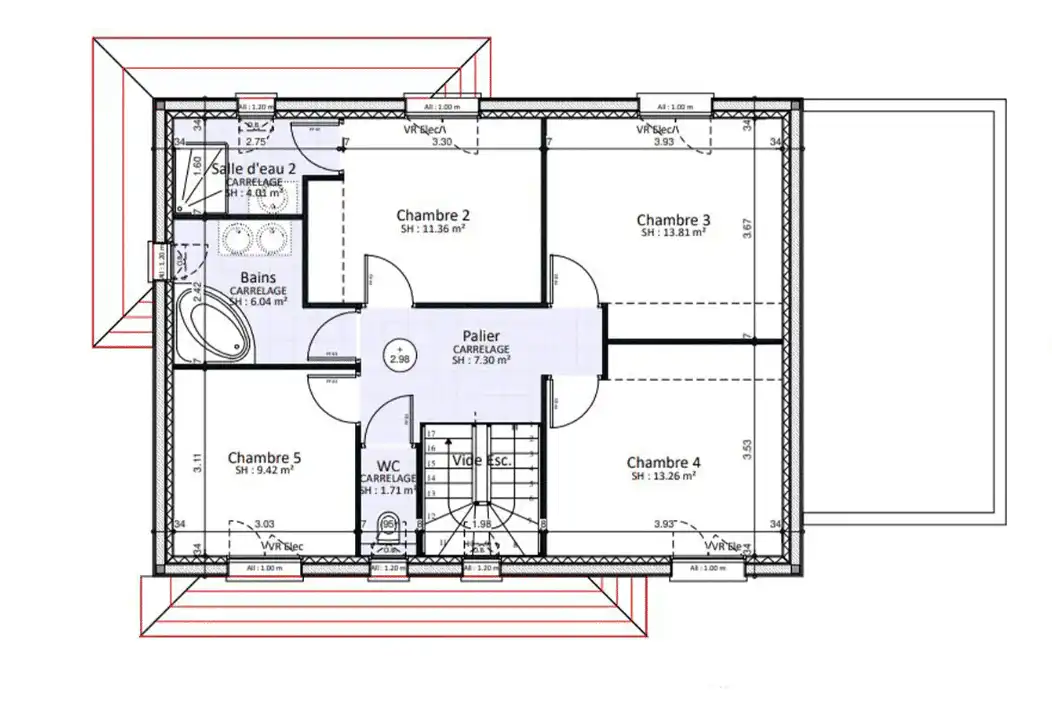 Notre bureau d’études a imaginé cette maison à étage dotée d’une suite parentale généreuse qui répondra à votre besoin de tranquillité et d’intimité. Elle comprend un spacieux dressing et une salle de bain attenante, offrant un confort absolu.