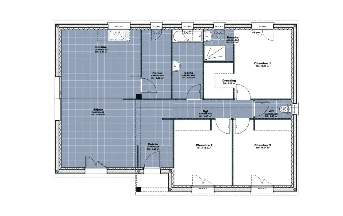 Notre bureau d’études a imaginé cette maison dotée d’une grande suite parentale qui répondra à votre besoin de tranquillité et d’intimité. Elle comprend un spacieux dressing et une salle de bain attenante, offrant un confort maximum.