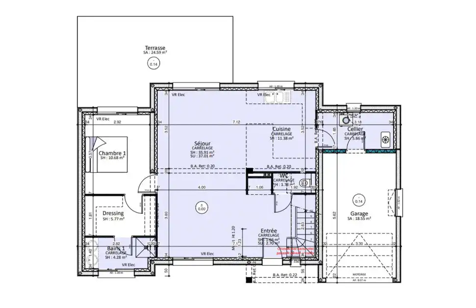Notre bureau d’études a imaginé cette maison avec étage dotée d’une suite parentale généreuse qui répondra à votre besoin de tranquillité et d’intimité. Elle comprend un spacieux dressing et une salle de bain attenante, offrant un confort optimal.