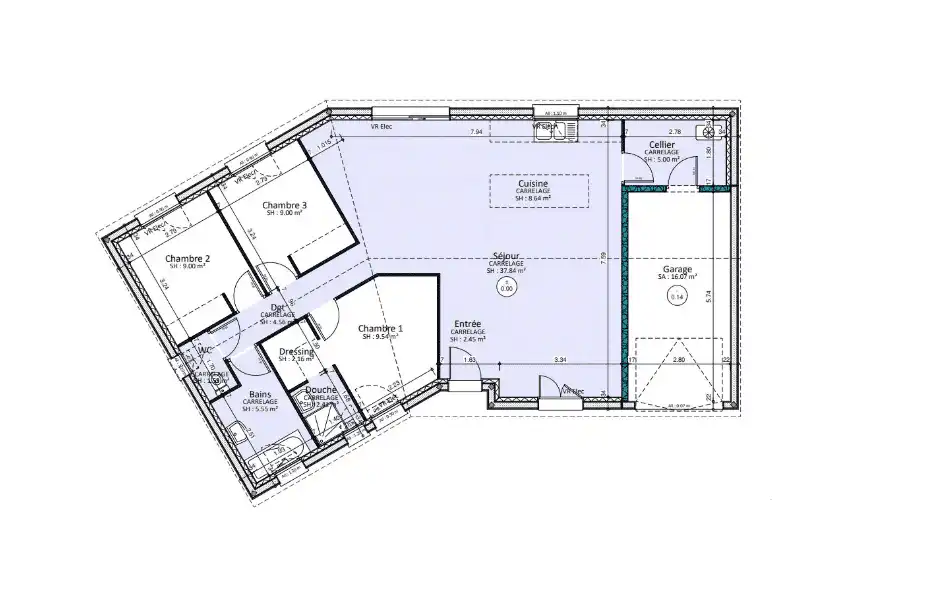 Notre bureau d’études a imaginé cette maison de plain-pied dotée d’une suite parentale généreuse qui répondra à votre besoin de tranquillité et d’intimité. Elle comprend un spacieux dressing et une salle de bain attenante, offrant un confort optimal.